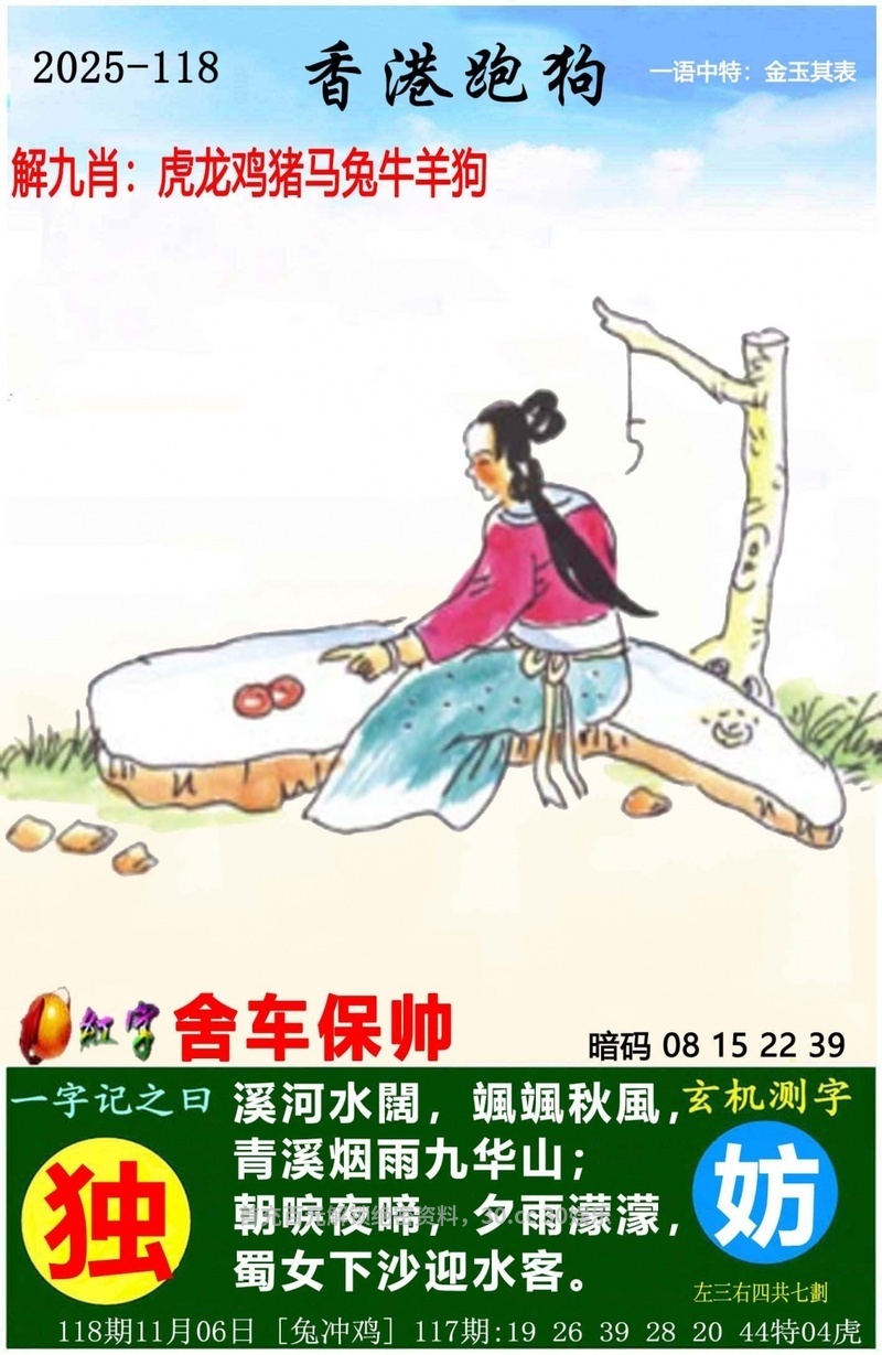 一字玄机解释:右边的夜字可解夜肖,鼠牛虎鸡狗猪。